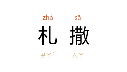 ⒈ 蒙语的音译。意为法令。《元朝秘史》释为“法度”、“军法”。亦有“法律”、“条例”、“政治”等义。南宋嘉泰二年(公元1202年),蒙古部始有札撒。开禧二年(公元1206年),蒙古汗国建立后,渐趋完备,设专人执掌,立“青册”,以畏兀儿字记蒙古语,逐渐演变为成文法,称“札撒大典”。每逢新汗即位、诸王集会、军队调动等国家大事,均聚众颁读,按律遵行。在现代蒙古语中,此词只有“政权”、“政务”、“政府”等义。