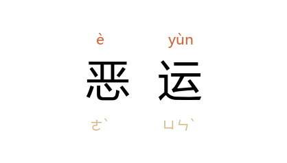 引《汉书·昌邑哀王刘髆传赞》:“千秋 材知未必能过人也,以其销恶运,遏乱原,因衰激极,道迎善气,传得天人之祐助云。”巴金 《秋》四:“你看他们多快乐。我和你却落在同样的恶运里面。”