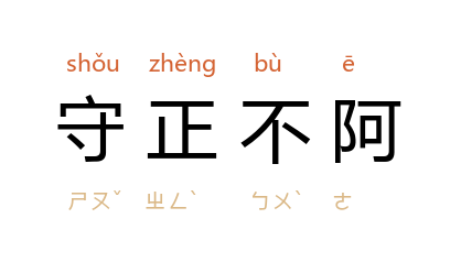 ⒈ 做人处事坚守正道,公正无私。宋·陈亮〈萧曹丙魏房杜姚宋何以独名于汉唐〉:「姚崇之遇事立断,宋璟之守正不阿,以共成明皇开元之治,亦不负君臣之遇合矣。」也作「守正不挠」。