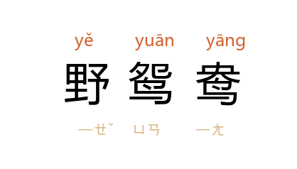引唐·杜甫〈数陪李梓州泛江有女乐在诸舫戏为艳曲二首赠李〉诗之二:「使君自有妇,莫学野鸳鸯。」