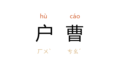 ⒈ 掌管民户、祠祀、农桑等的官署。 后汉、三国 魏 以下有户曹掾。 北齐 与功曹同为参军。 隋 有户曹参军。 唐 诸府称户曹。在州曰司户。户曹掌管籍账、婚姻、田宅、杂徭、道路等事。又 清 代户部司员亦称户曹。参阅《文献通考·职官十七》。