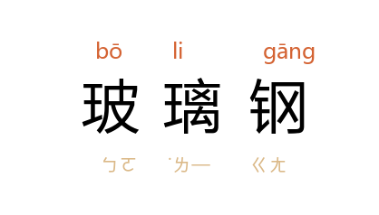 ⒈ 用玻璃纤维及其织物和合成树脂胶合而成的一种材料。质轻而坚,机械强度可和钢材相比,故名。不导电,耐腐蚀,可以代替金属做机器零件和汽车、船舶外壳等。