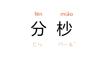 引宋 陆友仁 《研北杂志》卷四:“殆犹修内司法式,分杪不得踰越。”清 唐甄 《潜书·居心》:“好学者,内省外察,唯恐分杪之不合於圣人。”清 全祖望 《刘继庄传》:“为正切线表,而气节之后先,日蚀之分杪,五星之陵犯占验,皆可推矣。”