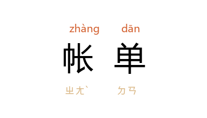 ⒉ 记载金钱、货物往来的单子。也作「账单」。