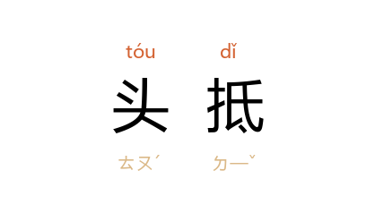 引宋 杨万里 《听蝉》诗之三:“更从谁子做头抵,只放斜阳不落休。”金 董解元 《西厢记诸宫调》卷二:“把破设设地偏衫揭将起,手提着戒刀道:‘我待与羣贼做头抵。’”元 无名氏 《谢金吾》第三折:“来,来,来,我敢和你做头抵。”
