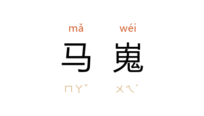 ⒈ 地名。在陕西省兴平县。唐安史之乱,玄宗奔蜀,途次马嵬驿,卫兵杀杨国忠,玄宗被迫赐杨贵妃死,葬于马嵬坡。