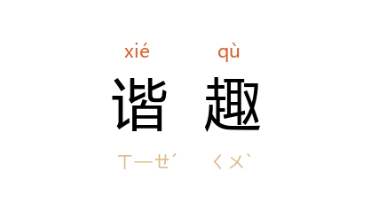 例如:「他谐趣、幽默的言谈,把大家都逗笑了。」