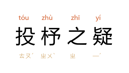 ⒈ 投杼,抛下织布的梭子。投杼之疑,比喻没有事实依据的谣言所造成的疑虑。