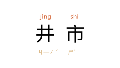 引唐 李绅 《入扬州郭》诗:“堤绕门津喧井市,路交村陌混樵渔。”明 文徵明 《饮子畏小楼》诗:“君家在 皐桥,諠闐井市区。”
