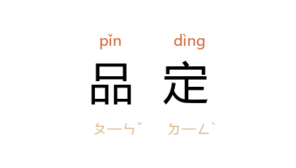 引《南史·柳恽传》:“梁武帝 好弈棊,使 惲 品定棊谱……第其优劣,为《棊品》三卷。”宋 苏轼 《论给田募役状》:“仍以肥瘠高下,品定顷亩,务令召募得行。”清 俞樾 《茶香室三钞·吴中四泉》:“张又新 本非端人,而名泉乃经其品定,不足为荣。”