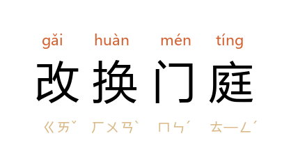 ⒈ 改变门第出身,以提高身分地位。也作「改换门闾」。