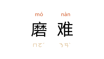 ⒈ 阻碍、灾难。宋·周邦彦〈归去难·佳约人未知〉词:「多少闲磨难,到得其时,知他做甚头眼。」元·无名氏也作「魔难」。