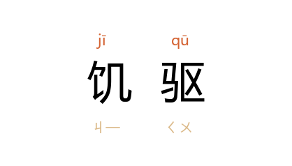 ⒈ 为飢饿所驱使。谓为衣食而奔忙。饥,通“飢”。