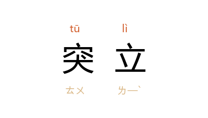 引刘白羽 《英雄城--平壤》:“巨大的建筑已经毁坏了,可是那危耸的高墙突立在月光之中,凛然表现着一种不屈服的气概。”井频 《跋涉者的问候》:“透过灰色的大气,可看见 戈壁滩 的老北边,孤独地突立着一架石头大山,叫做 贺黎山。”