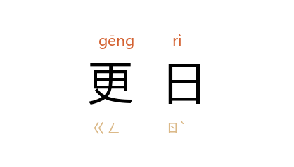 引《太平广记》卷十三引 晋 葛洪 《神仙传·苏仙公》:“先生家贫,常自牧牛,与里中小儿更日为牛郎。”《南史·孝义传上·会稽陈氏三女》:“遇岁饥,三女相率於 西湖 採菱蓴,更日至市货卖,未尝亏怠。”