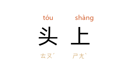 ⒈ 头的上方;头顶。指时候,时间的某一点。方位词。用在名词后,表示在某种事物的范围以内。先,前头。