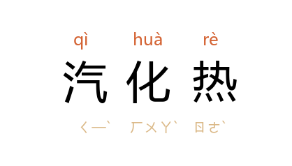 ⒈ 物质在沸点由液相变为气相所需吸收的热,称为「汽化热」。如水的莫耳汽化热为十仟卡。