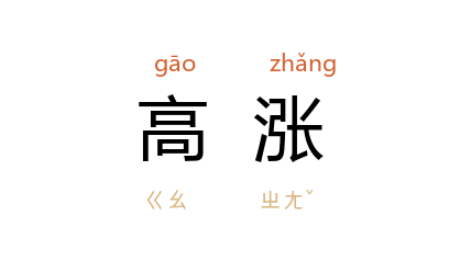 例如:「物价高涨」、「台风带来的豪雨,使得基隆河水位高涨。」