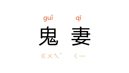 引《墨子·节葬下》:“其大父死,负其大母而弃之,曰:‘鬼妻不可与居处。’”清 钱谦益 《王师二十四韵》:“处处悬人腊,家家占鬼妻。”清 李调元 《南越笔记》卷二十:“粤 东之估,往赘西 粤 土州之妇人寡者曰鬼妻,人弗娶也。”