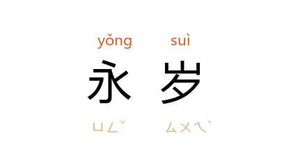 ⒈ 长寿。太平天国·天王·洪秀全第三子以下诸子,臣下呼为“永岁”。中国近代史资料丛刊《太平天国·太平天国官书·太平礼制(八年)》:“王世子臣下呼称‘幼主万岁’;第三子臣下呼称‘光王王三殿下永岁’……以下第六子至百子千子皆倣此类推。”
