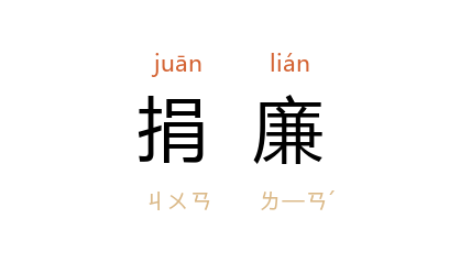 引《清史稿·高宗纪二》:“﹝十四年﹞二月乙酉, 唐绥祖 请率属捐廉助餉。”后多指个人捐款。 清 黄本铨 《枭林小史》:“吴 首创捐廉集义勇,遥应为声援。”郭沫若 《归去来·在轰炸中去来》:“因为前方车辆缺乏, 陈夫人 自己捐廉,把车皮改漆了一遍,送到前方来使用。”