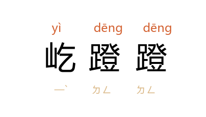 ⒈ 状声词。形容马蹄声。元·李直夫也作「矻蹬蹬」、「圪登登」、「圪蹬蹬」。