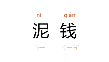 ⒈ 用钱作模,压泥而成的钱形玩物。
