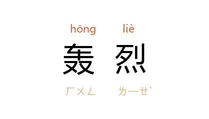 引张竞生 《丁未潮州黄冈革命》:“潮州 革命,以 饶平县 黄冈镇 一役为党史最轰烈最痛心者。”郭沫若 《女神·棠棣之花》:“不愿久偷生,但愿轰烈死。”