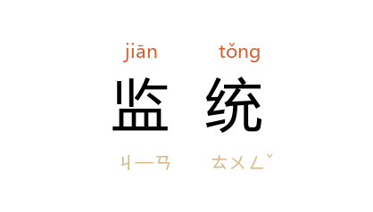 引《后汉书·袁绍传》:“授 监统内外,威震三军。”《晋书·石鉴传》:“武帝 崩, 鉴 与中护军 张劭 监统山陵。”唐 韩愈 《送汴州监军俱文珍序》:“其监统中贵,必材雄德茂,荣耀宠光,能俯达人情,仰喻天意者,然后为之。”宋 叶适 《纪纲二》:“艺祖 思靖天下,以为不削节度则其祸不息,於是始置通判,以监统刺史而分其柄。”