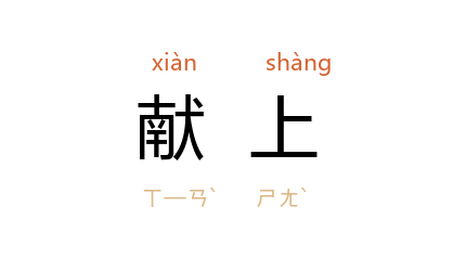 引《后汉书·班固传下》:“每行巡守,輒献上赋颂。”三国 魏 曹植 《上牛表》:“谨奉牛一头,不足追遵大小之制,形少有殊,敢不献上。”明 汤显祖 《南柯记·决婿》:“同在讲筵,我和 上真子 于讲下献上公主的犀盒、金釵,此生顾盼有餘,赏嘆不足。”