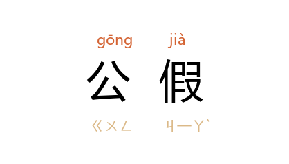 例如:「小王赴美考察,向公司请了一个月的公假。」