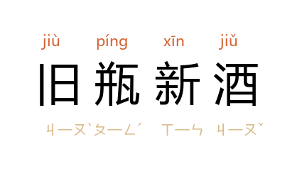 ⒈ 比喻虽力求革新,但仍无法挣脱桎梏,只能拘泥在旧有的模式里表现新意。也作「旧瓶装新酒」。