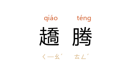 引宋 曾巩 《冬暮感怀》诗:“将帅色凋槁,蚍蜉势趫腾。”清 王士禛 《池北偶谈·谈异七·化虎》:“形体犹人,与羣虎队行,趫腾絶壁,如履平地。”