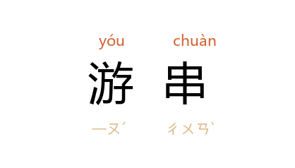 引马烽 西戎 《吕梁英雄传》第四六回:“我 张有义 以前名誉不好,爱串门子。自那回带了彩回来,比谁不规矩?不是和你们在一块活动,就是在地里受苦,谁碰见过我闲游串?”李季 《三边一少年·伤心》诗:“他匆忙地,把羊群赶进羊圈。端起饭碗,就到门外游串。”到处走动。 《醒世恒言·张廷秀逃生救父》:“拉去行院中游串,作东戏耍。”