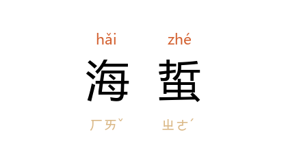 ⒈ 生活在海中的一种腔肠软体动物,体形半球状,可作食用,上面呈伞状,白色,借以伸缩运动,称为海蜇皮,下有八条口腕,其下有丝状物,灰红色,叫海蜇头。