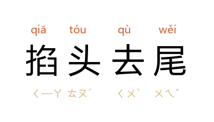 多比喻略去事情的来龙去脉、前因后果。 老舍 《骆驼祥子》二二:“他的记忆是血汗与苦痛砌成的,不能随便说着玩,一说起来也不愿掐头去尾。”