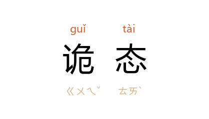 引《魏书·恩倖传·徐纥》:“时豪胜己,必相陵驾;书生贫士,矫意礼之。其诡态若此,有识鄙薄焉。”唐 刘禹锡 《观市》:“鼓舌傖儜,詆欺相高,诡态横出,鼓嚣譁岔。”