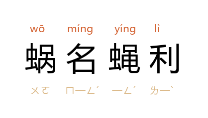 ⒈ 形容微不足道的名利。金·刘志渊〈行香子·妙道勤求〉词:「妙道勤求,乐以忘忧,要蜗名蝇利心休。」也作「蝇利蜗名」。