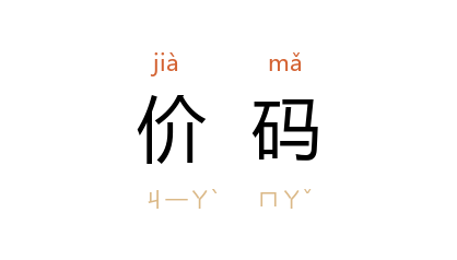 引老舍 《四世同堂》四五:“他算计,他跑路,他交涉,他假装着急,而狠心的不放价码。”萧红 《马伯乐》:“比方哪位买了件新东西,他就愿意估一个价码。”