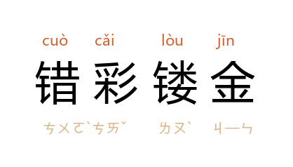 ⒈ 形容雕绘精巧华丽。南朝梁·钟嵘也作「镂金错采」。