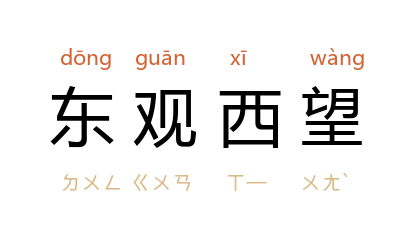 引《喻世明言·卷二六·沈小官一鸟害七命》:「张公也慌张了,东观西望,恐怕有人撞见。」