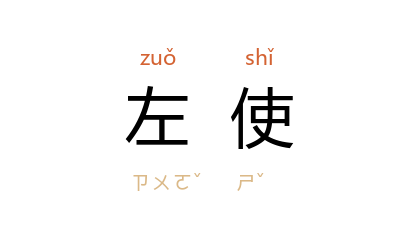 引元 张可久 《满庭芳·次韵雪竹》曲:“俏 苏卿 你休来左使,病 文园 敢不为相思。”《明律·吏律一·奸党》:“凡姦邪进谗言,左使杀人者斩。”