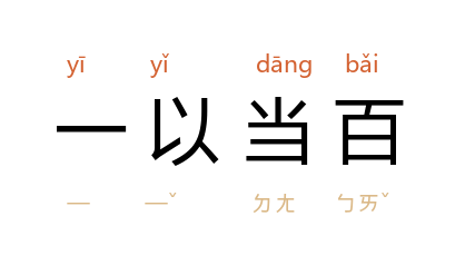 引《后汉书·光武帝纪上》:“诸将既经累捷,胆气益壮,无不一当百。”清 昭槤 《啸亭杂录·缅甸归诚本末》:“及晨,血战於万贼中,无不一当百。”清 夏燮 《中西纪事·海疆殉难记上》:“夷兵再却再进,我军无不一以当百,自辰至申,饥不得食,渴不得饮,誓死格斗。”