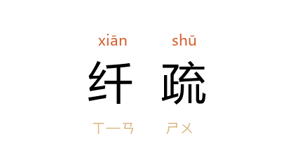 引南朝 梁 沉约 《愍衰草赋》:“布绵密於寒皋,吐纤疏於危石。”南朝 梁 刘勰 《文心雕龙·练字》:“瘠字累句,则纤疎而行劣;肥字积文,则黯黕而篇闇;善酌字者,参伍单復,磊落如珠矣。”