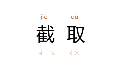 ⒊ 清 制,根据官员食俸年限及科分、名次,核定其截止期限,由吏部予以选用,称为截取。又举人于中式后经过三科,由本省督抚给咨赴吏部候选,亦称截取。 清 黄辅辰 《戴经堂日钞》:“咸丰 初,任 清 政府吏部郎中。参阅《清会典事例·吏部·科道郎中截取》。