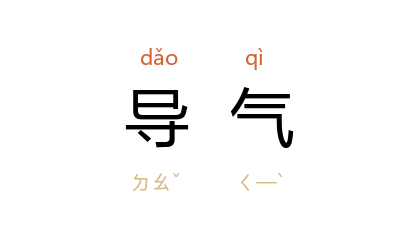 引汉 王充 《论衡·道虚》:“道家或以导气养性,度世而不死。”清 唐甄 《潜书·两权》:“今有厚养之士,节食、远色、导气、服药,身无疾病,可以长年。”《红楼梦》第六三回:“素知 贾敬 导气之术,总属虚诞。”
