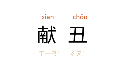⒉ 向人出示著作或呈献才技时的谦词。 宋 许棐 撰书一卷名为《献丑集》。