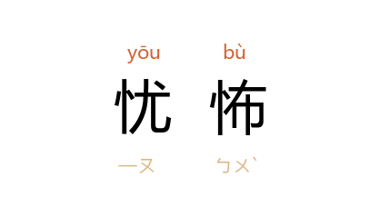 引《后汉书·袁绍传》:“闻 魏郡 兵反……坐中客家在 鄴 者,皆忧怖失色,或起而啼泣。”宋 陆游 《暮次秭归》诗:“是身初非我,底处着忧怖。”清 孙枝蔚 《渡江行》之二:“江神念我多忧怖,蛟龙远遁镜中路。”