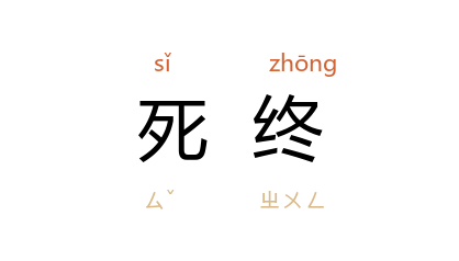 引《周礼·天官·疾医》:“凡民之有疾病者,分而治之。死终则各书其所以,而入於医师。”郑玄 注:“少者曰死,老者曰终。”贾公彦 疏:“云死终者,谓民之有病不问老少皆治之,不愈,少死则曰死,似不得寿终然,故曰死;老者则曰终,谓虽治不愈,似得寿终,故曰终也。”