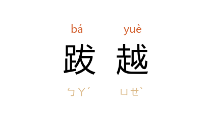 引战国 楚 宋玉 《大言赋》:“并吞四夷,饮枯河海,跋越九州,无所容止。”跋,一本作“跂”。 隋 侯白 《启颜录·命群臣为大言》:“臣跋越九州,间不容趾,并吞天下,欲枯四海。”